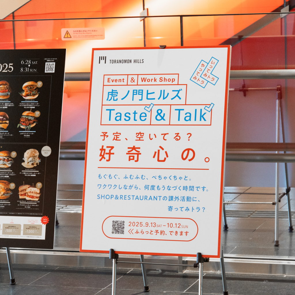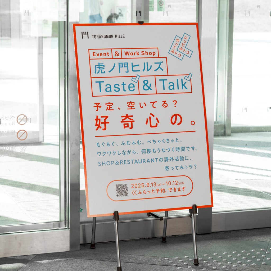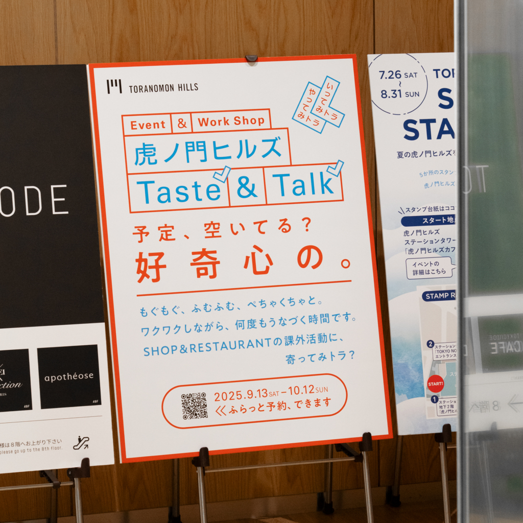 虎ノ門ヒルズTaste&Talkã®ãƒã‚¹ã‚¿ãƒ¼ã¨ã‚¦ã‚§ãƒ–・アプリ用ãƒãƒŠãƒ¼ã®ã‚¢ãƒ¼ãƒˆãƒ‡ã‚£ãƒ¬ã‚¯ã‚·ãƒ§ãƒ³ï¼‹ãƒ‡ã‚¶ã‚¤ãƒ³ã€‚B1サイズã®ãƒ‘ãƒãƒ«ãŒè™ŽãƒŽé–€ãƒ’ルズã®å„æ‰€ã«æŽ²ç¤ºã•れã¦ã„ã¾ã™ã€‚